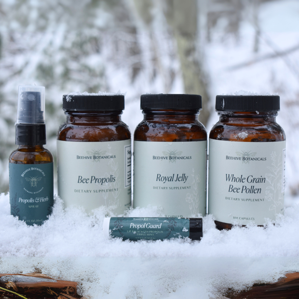 Start the school year right by supporting your immune system with the Beehive Botanicals Health & Wellness supplements bundle. The bundle contains whole grain bee pollen, propolis and essential oils to help you renew energy and create balance to build a strong body and mind. We combine these powerful botanicals to make an easy and convenient way to include bee products into your daily health and wellness routine.